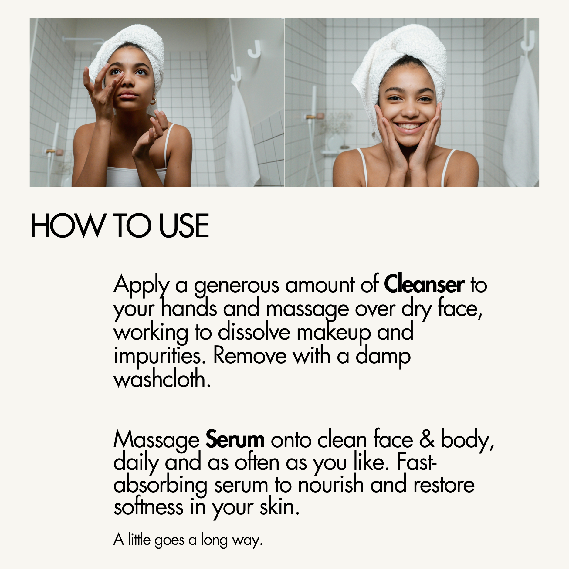 Together, they form a complete routine that supports healthy, radiant skin from face to body. It’s a natural, luxurious treat for every day.
