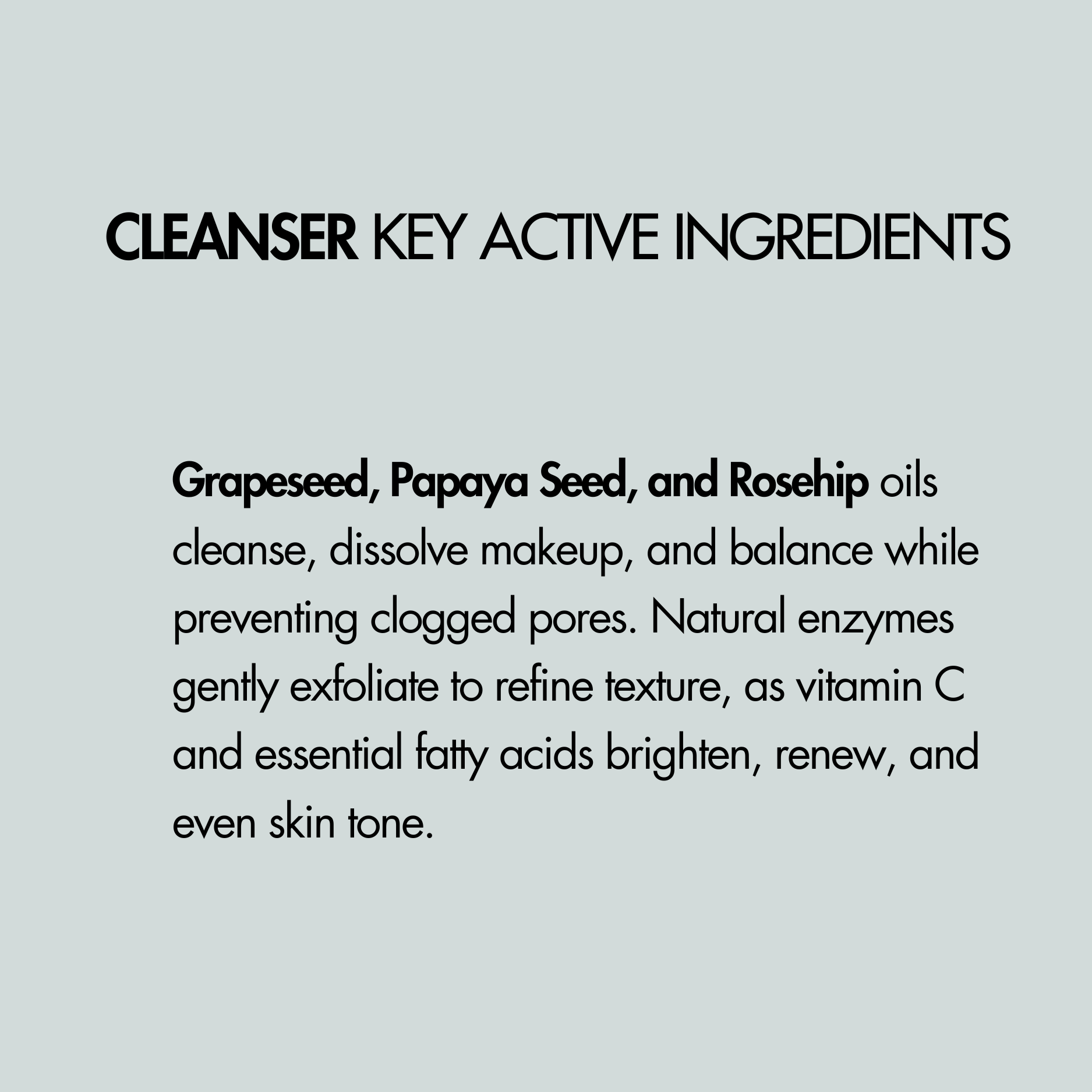 The Oil Cleanser, a gentle formula that dissolves makeup and impurities while supporting your skin's natural barrier. A silky blend of active oils removes makeup, lifts impurities, and naturally exfoliates with papaya seed, leaving skin smooth, hydrated, and radiant. Lightly scented with soft blooms.